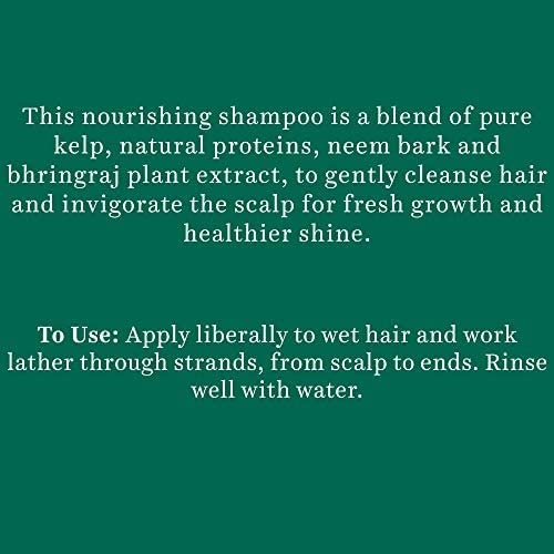This shampoo blends pure kelp—a nutrient‑rich seaweed—with natural proteins, neem bark and bhringraj extract to cleanse the scalp while nourishing hair strands. The formula produces a comfortable lather, aims to remove build‑up that can impede healthy growth, and is marketed to improve hair strength and shine with repeated use. The range is available in multiple sizes including 180ml and 340ml.