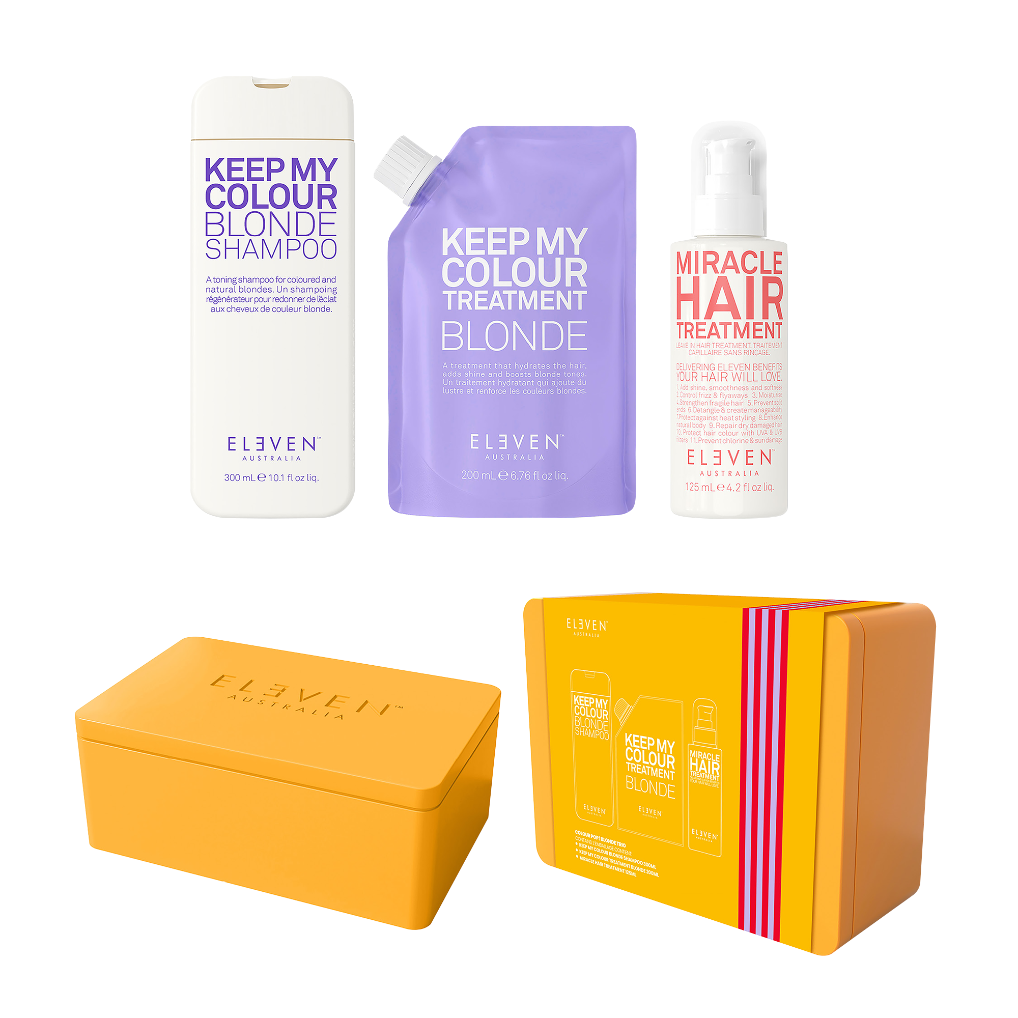 The Eleven Australia Blonde Trio Gift Pack is the ultimate blonde-care bundle designed to tone brassiness, hydrate dry strands, and deliver salon-quality softness and shine. This expertly curated set includes: