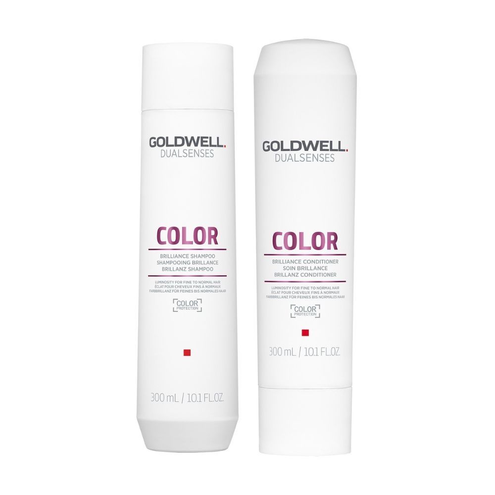 The Goldwell Dualsenses Color Brilliance Bundle is a professional haircare duo designed to protect colour vibrancy, enhance brilliance, and nourish fine to normal colour-treated hair.