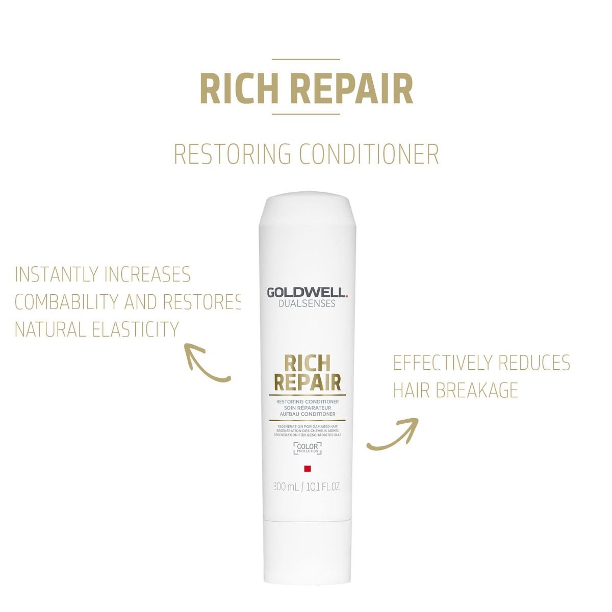 Goldwell Dualsenses Rich Repair Restoring Conditioner (300ml) – deeply nourishes, detangles, and strengthens hair fibres for lasting resilience and shine.
