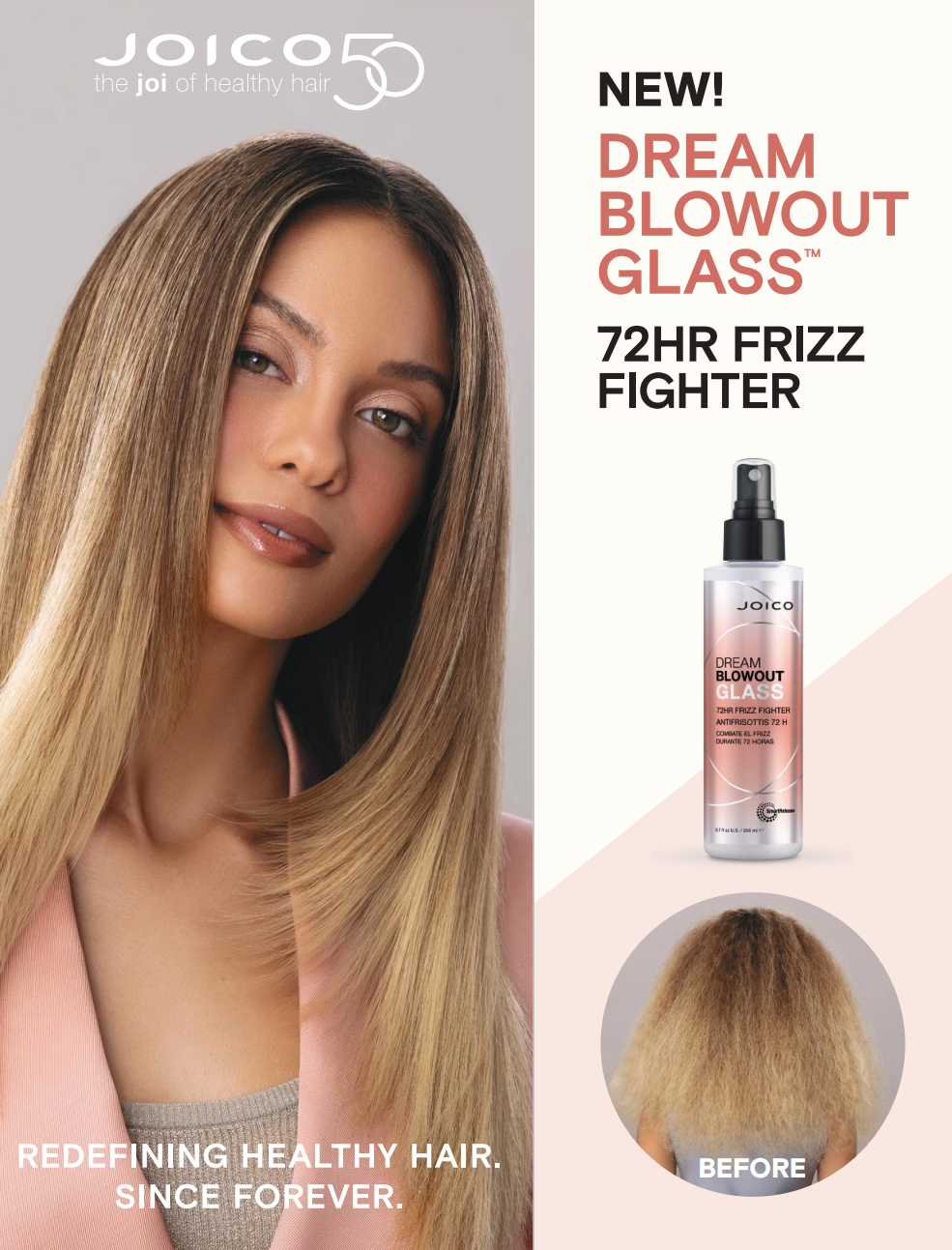 The Joico Dream Blowout Glass 72hr Frizz Fighter is a revolutionary styling spray designed to give you a sleek, humidity-resistant blowout that lasts up to three days. Infused with advanced frizz-fighting technology, it forms a protective shield around the hair cuticle, locking in moisture while delivering a glassy, mirror-like shine. This lightweight formula not only tames frizz but also offers thermal protection up to 400°F (204°C), reducing breakage and keeping hair healthy and radiant.