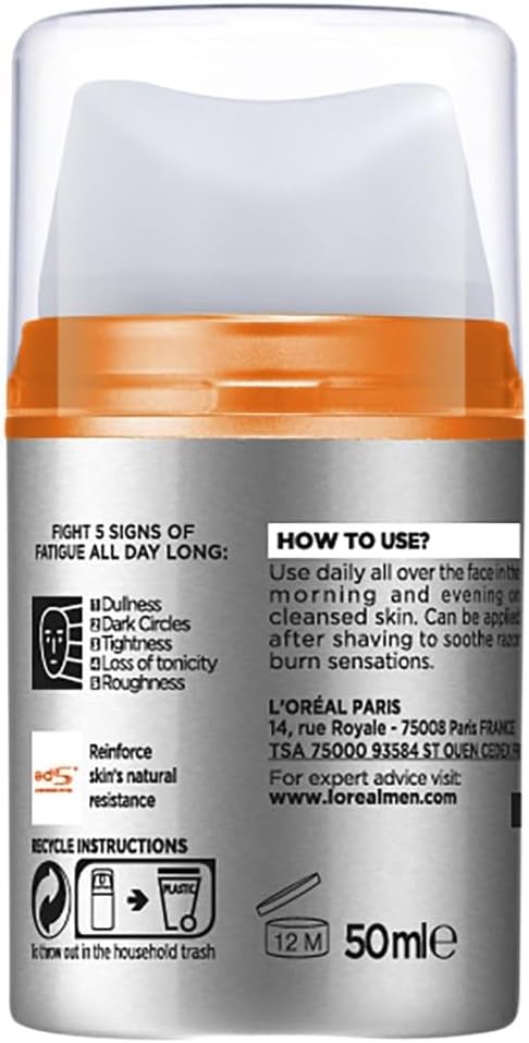 The L’Oréal Men Expert Hydra Energetic 24h Anti‑Fatigue Moisturiser is a powerful daily moisturiser designed to combat the visible signs of tired, stressed, and dull‑looking skin. Formulated with Vitamin C, Caffeine, and Hydra Energetic Technology, this energising moisturiser instantly refreshes the skin, reduces signs of fatigue, and provides long‑lasting hydration for up to 24 hours. Its lightweight, fast‑absorbing texture leaves the skin feeling smooth, revitalised, and ready to take on the day.