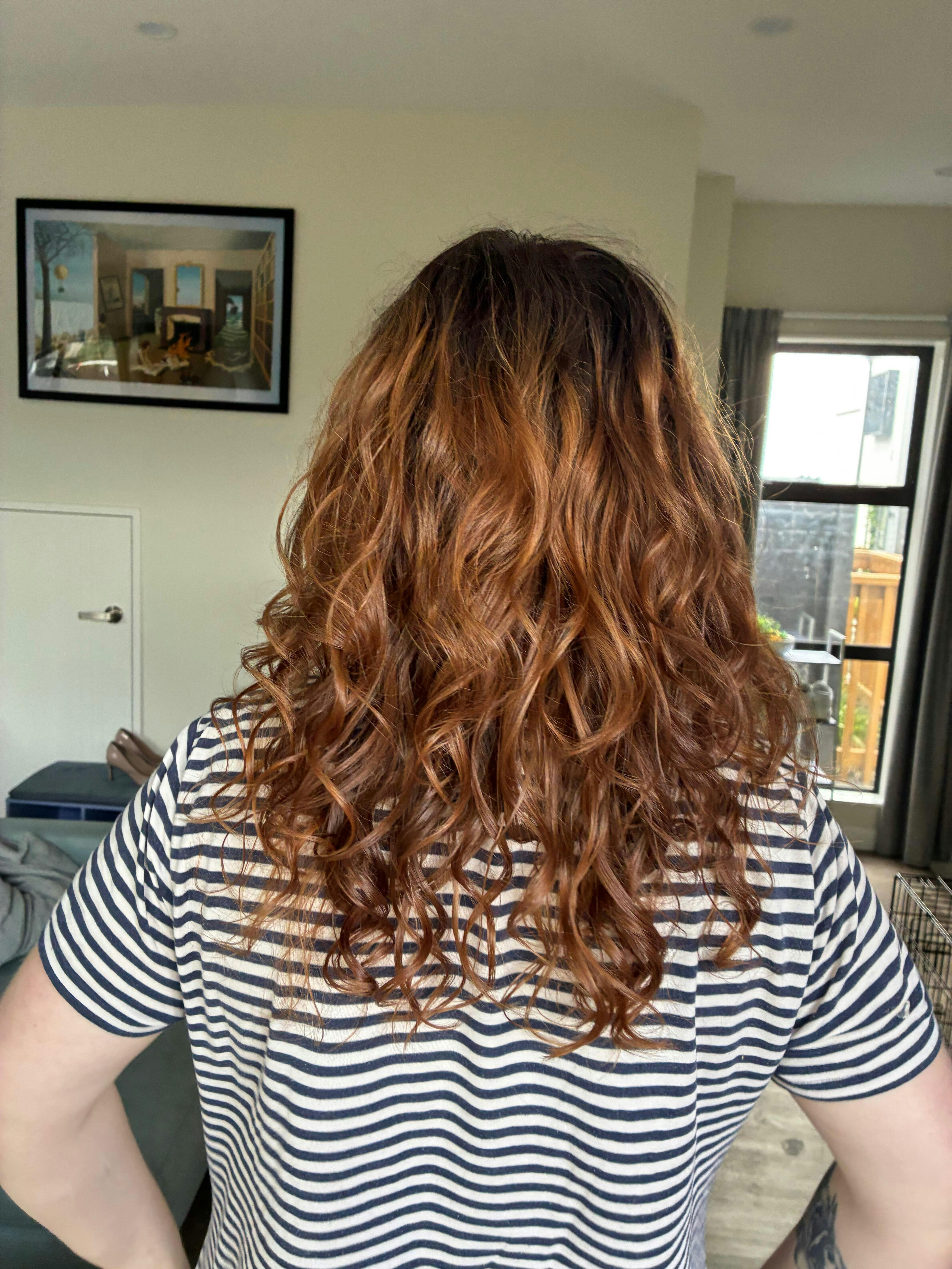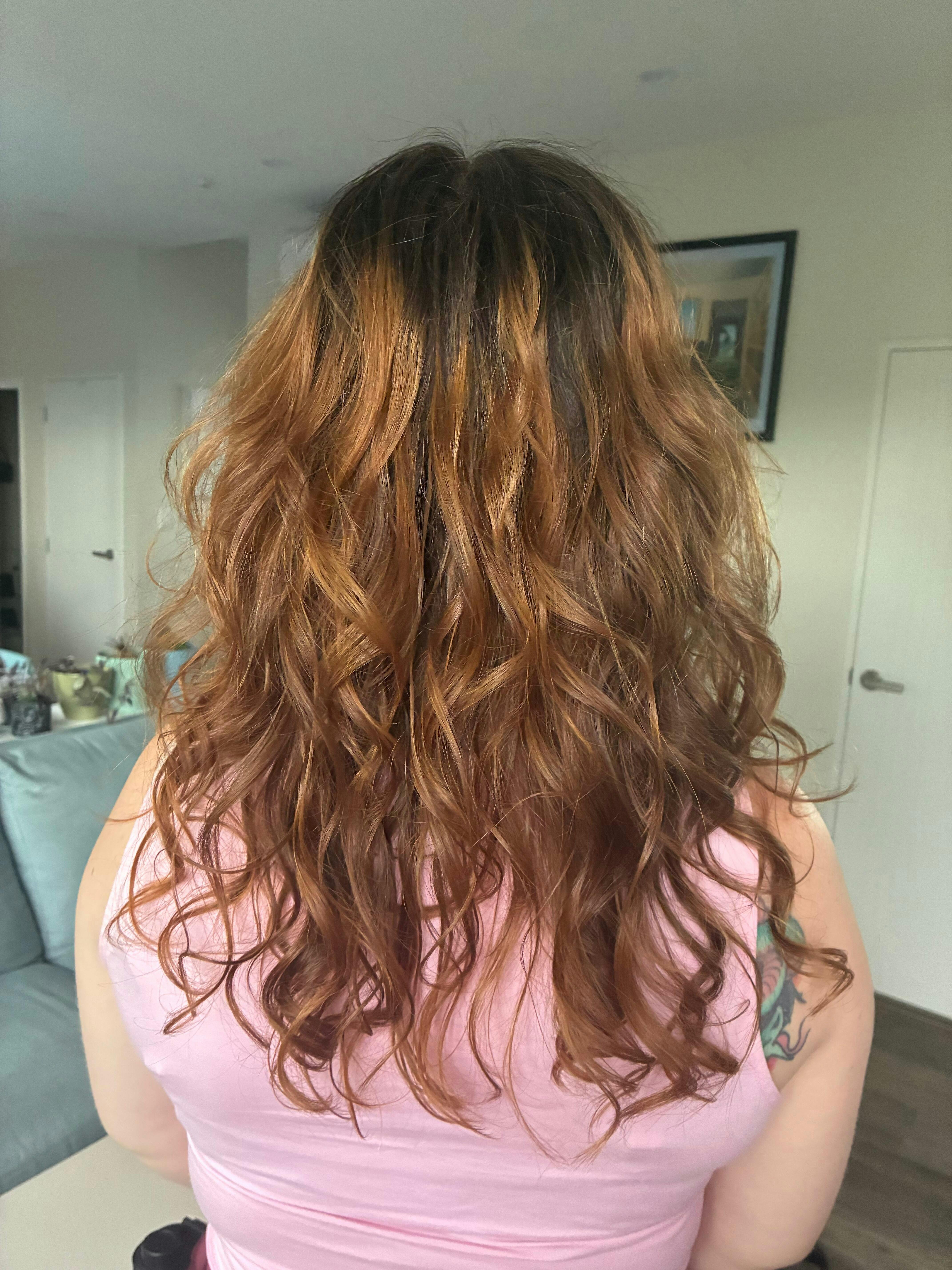 Pretty much a toner. I didn't know what to expect as there was not many reviews and I know this is intended for blonde base so I wasn’t sure what this do to my brassy orange hair. This colour is left over dye from dark box dye. I am trying to quit hair dye but I needed something to help with the demarcation line. I shampooed my hair and towel dried to leave the product in under a shower cap for just over 20 minutes. I feel like my hair is slightly darker and it’s blended quite well. Please note I purposefully tried to miss my roots so there will be little to no difference in my roots.