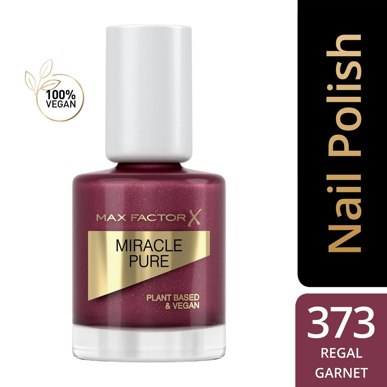 The Max Factor Miracle Pure Nail Polish (12ml) in Shade No. 373 Regal Garnet is a plant-based, nourishing nail polish that combines rich colour with nail care. Infused with up to 70% natural-origin ingredients, this polish delivers a breathable, high-shine finish while helping nails look healthier over time. The shade “Regal Garnet” is a deep, jewel-toned red with elegant undertones, perfect for evening wear, festive occasions, or whenever you want to make a bold, luxurious statement.