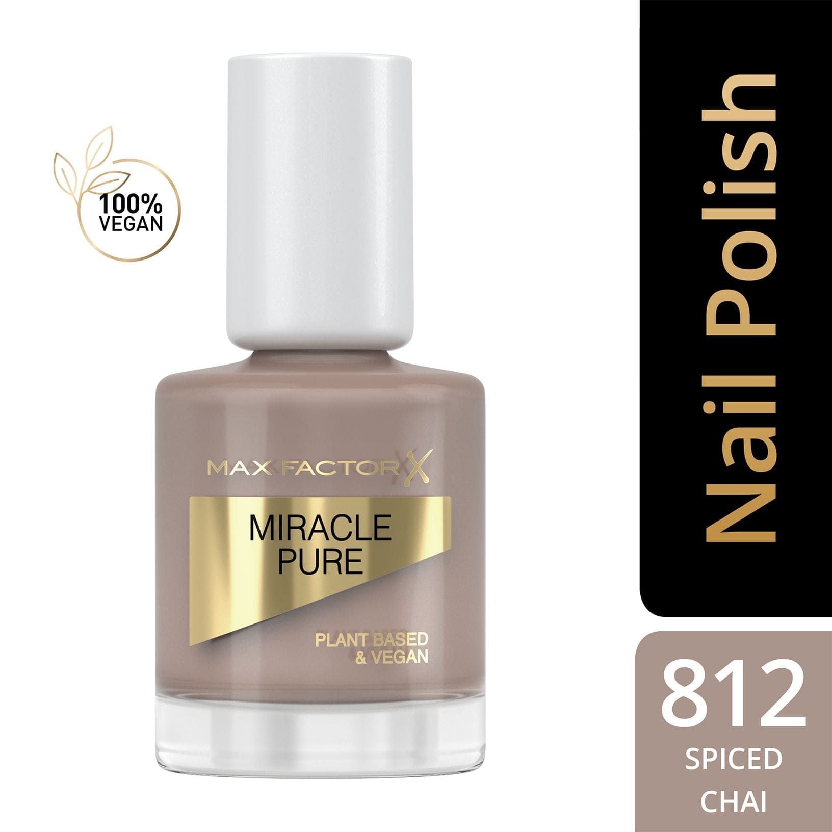 The Max Factor Miracle Pure Nail Polish (12ml) in Shade No. 812 Spiced Chai is a nail polish infused with plant-based ingredients that not only delivers stunning colour but also cares for your nails. With its advanced formula, this polish provides a high-shine finish, long-lasting wear, and nail-strengthening benefits. The shade “Spiced Chai” is a warm, medium brown with subtle spice undertones, perfect for autumn-inspired looks, professional wear, or chic everyday elegance.