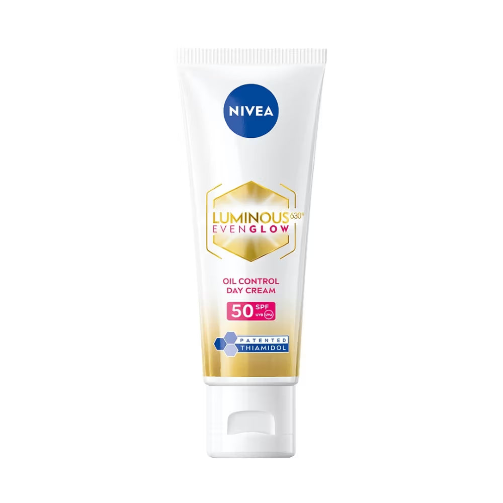 Achieve radiant, even-toned skin with Nivea Luminous Even Glow Oil Control SPF50 Day Cream, a breakthrough formula enriched with Hyaluronic Acid, Thiamidol, and SPF50. This day cream is designed to reduce dark spots, control excess oil, and protect your skin from harmful UV rays, leaving it smooth, hydrated, and luminous. Its lightweight, mattifying texture makes it perfect for daily use, ensuring your skin stays fresh and shine-free all day long.