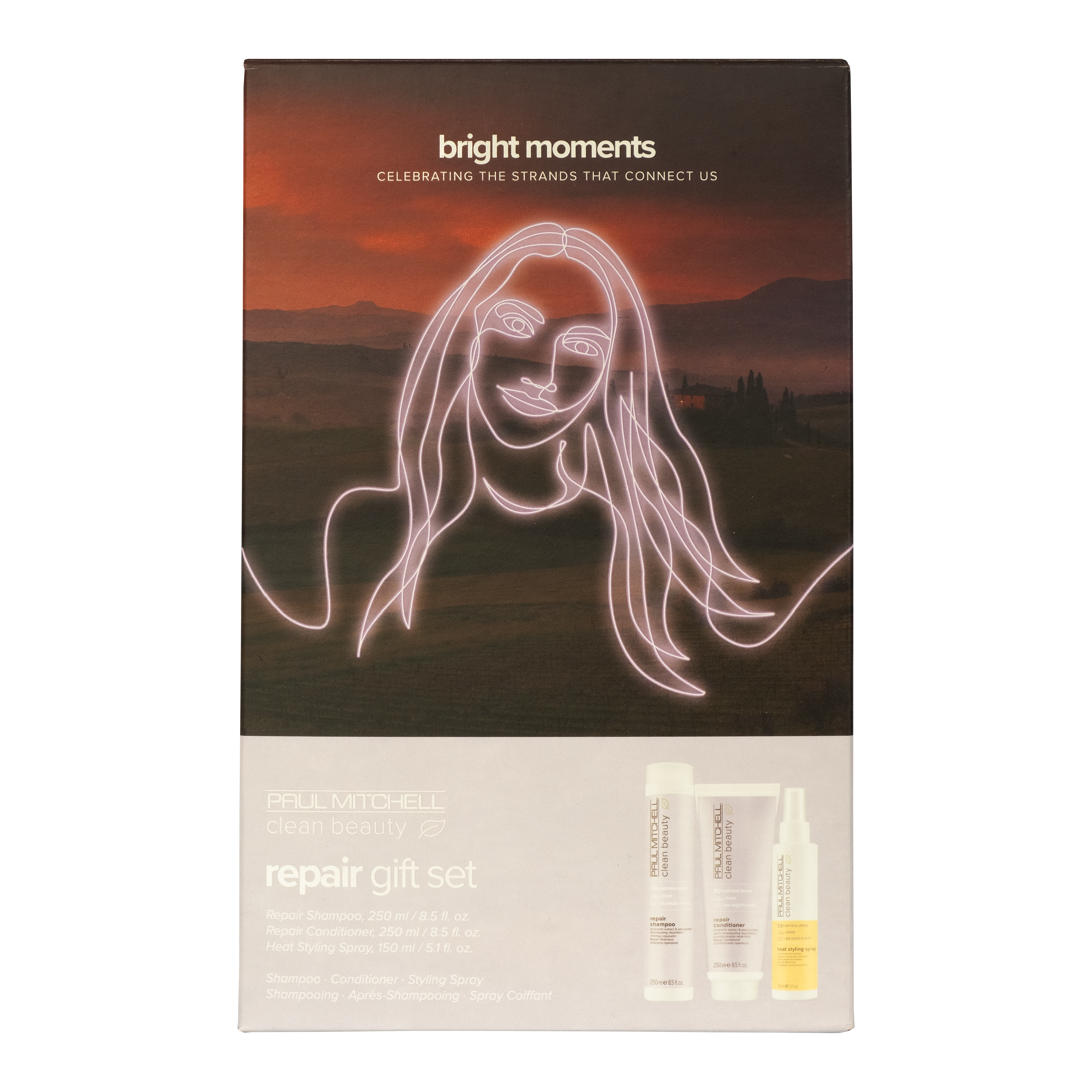 The Paul Mitchell Clean Beauty Repair Gift Set is a premium haircare bundle crafted to restore and protect damaged, brittle, or chemically treated hair. Infused with organic amaranth extract and pea protein, this trio strengthens strands from within while offering heat protection and long-lasting hydration. The set includes: