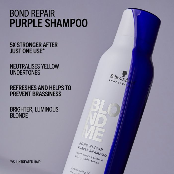 Blondme Bond Repair Purple Shampoo (300ml) : A violet-pigment cleanser that neutralises brassy tones while strengthening hair bonds for radiant blonde results.