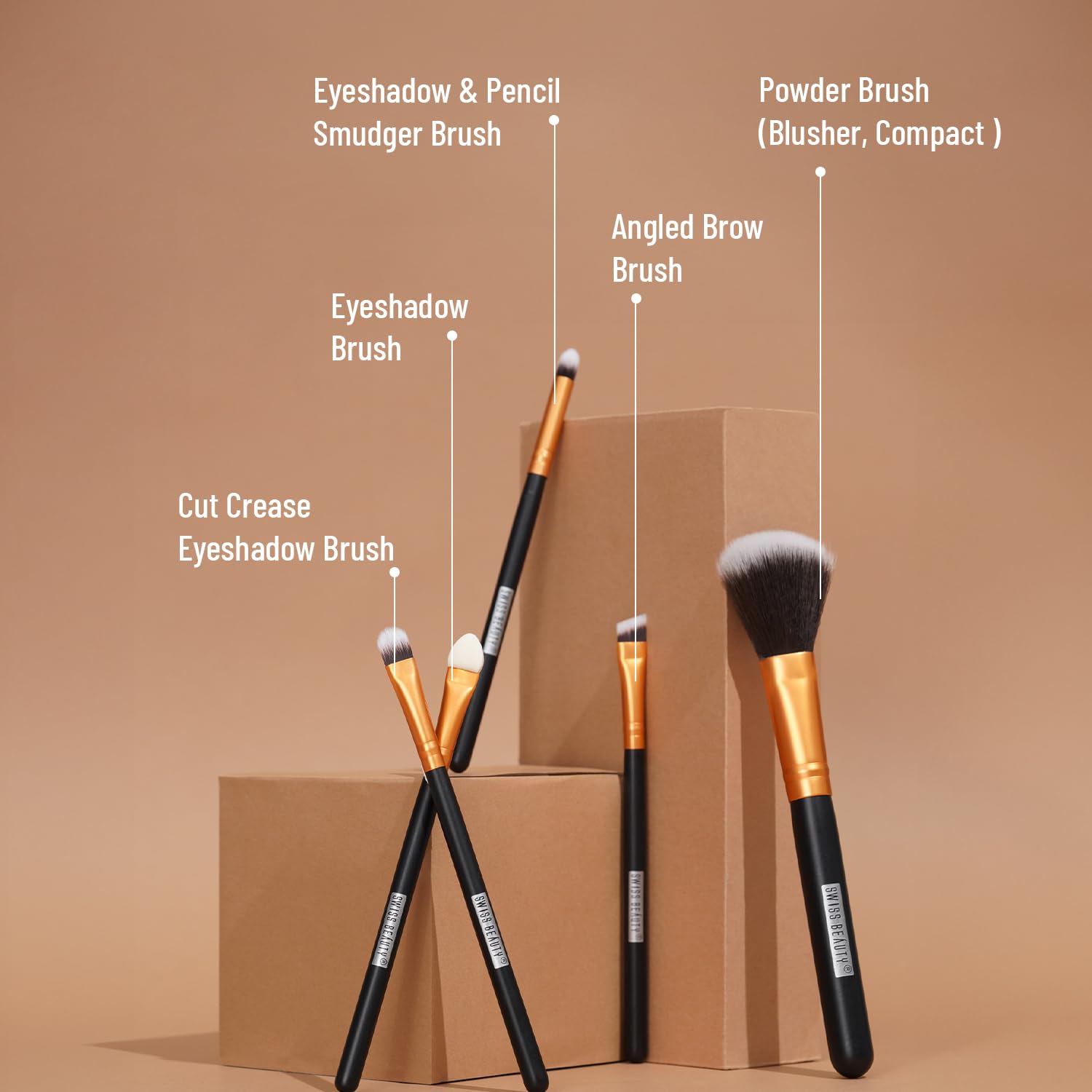 Swiss Beauty’s Makeup Brush Set of 5 in Golden Shade No. 1 is a compact and stylish brush kit crafted for both beginners and makeup enthusiasts. With soft synthetic bristles and ergonomic golden handles, this set includes essential brushes for face and eye makeup, allowing you to blend, contour, and highlight with ease.