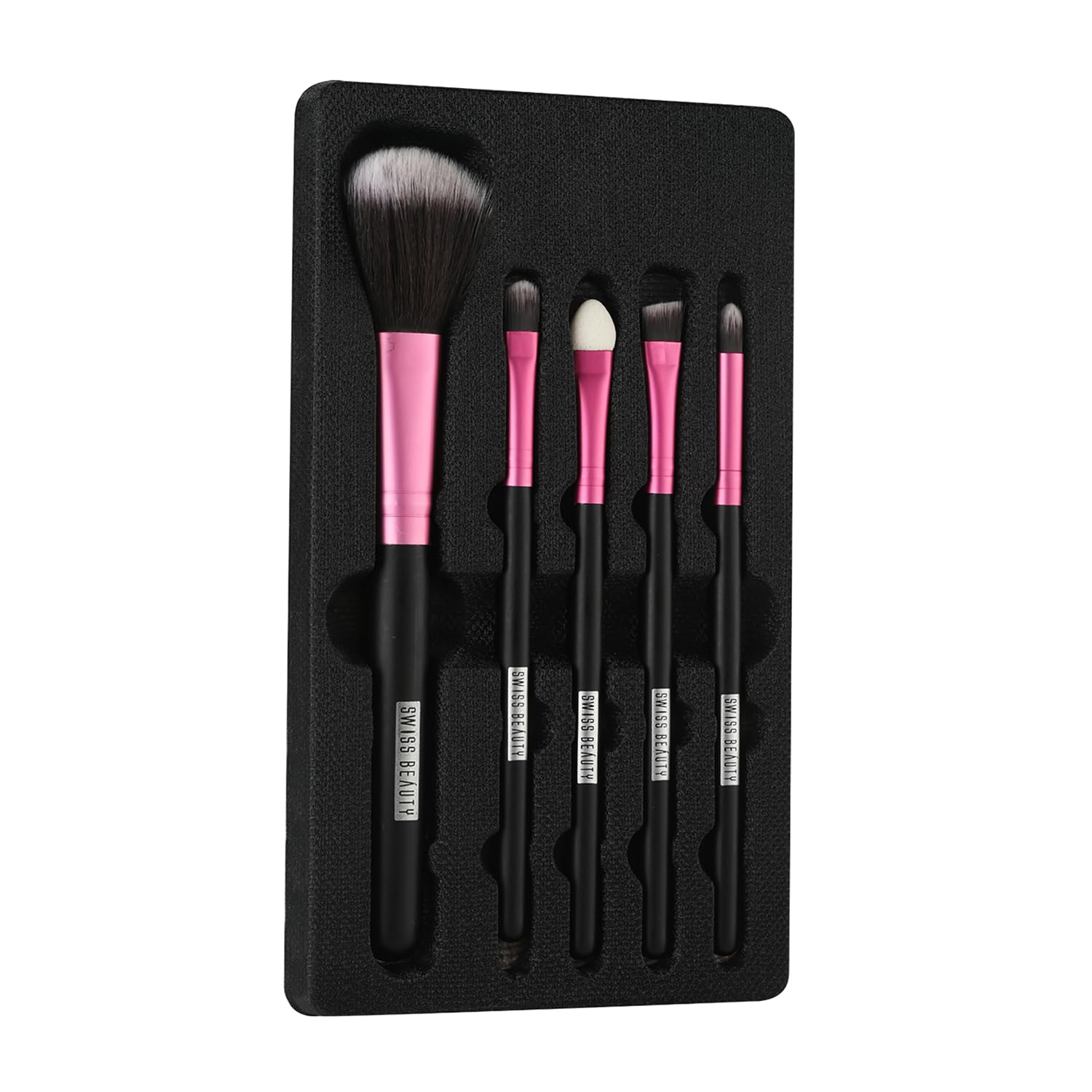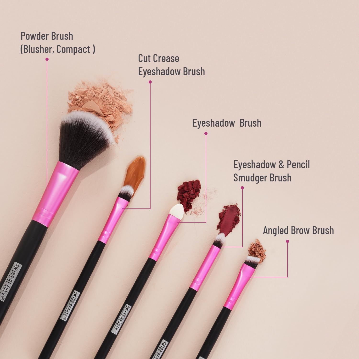 Swiss Beauty’s Makeup Brush Set of 5 in Pink Shade No. 2 is a stylish and practical collection of essential brushes crafted for smooth, streak-free makeup application. With soft synthetic bristles and sleek pink handles, this set is ideal for beginners and beauty lovers who want to achieve a flawless look with minimal effort.
