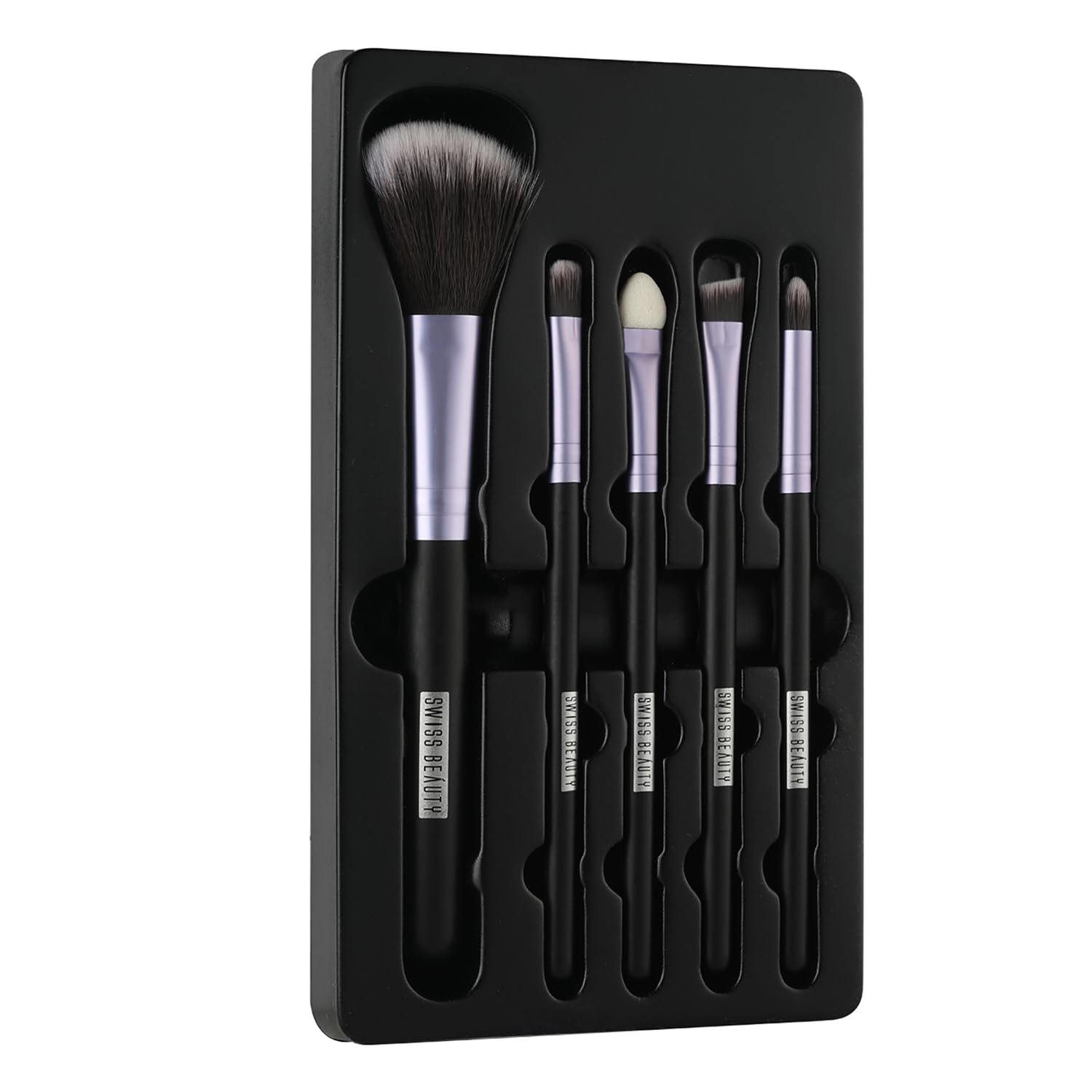 Swiss Beauty’s Makeup Brush Set of 5 in Purple Shade No. 3 is a compact and chic brush collection crafted for flawless makeup application. With soft synthetic bristles and lightweight purple handles, this set includes essential brushes for face and eye makeup—ideal for beginners, casual users, or anyone looking to upgrade their beauty routine.