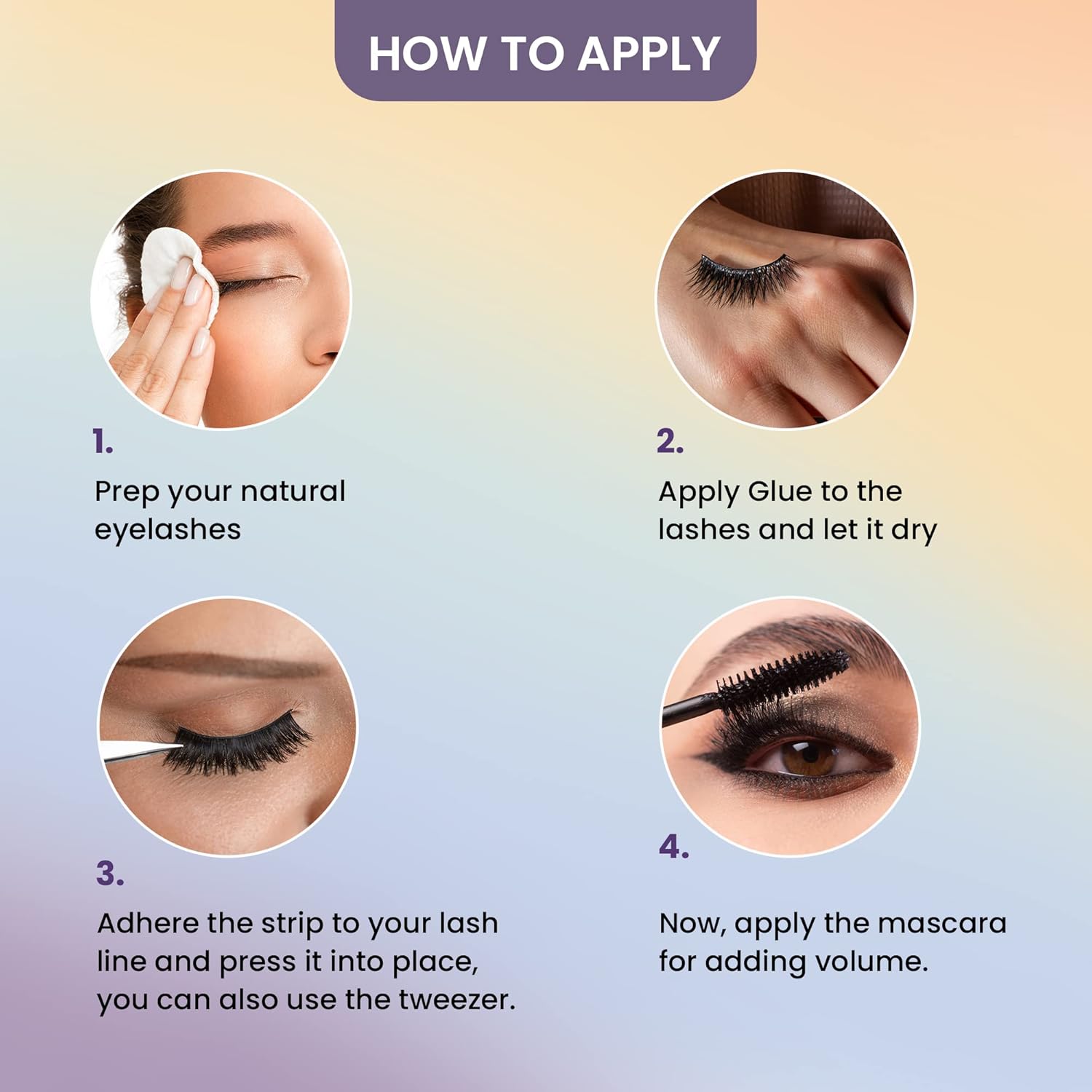 Remove & Clean: Peel off gently from the outer corner and clean with a cotton swab and makeup remover to reuse.