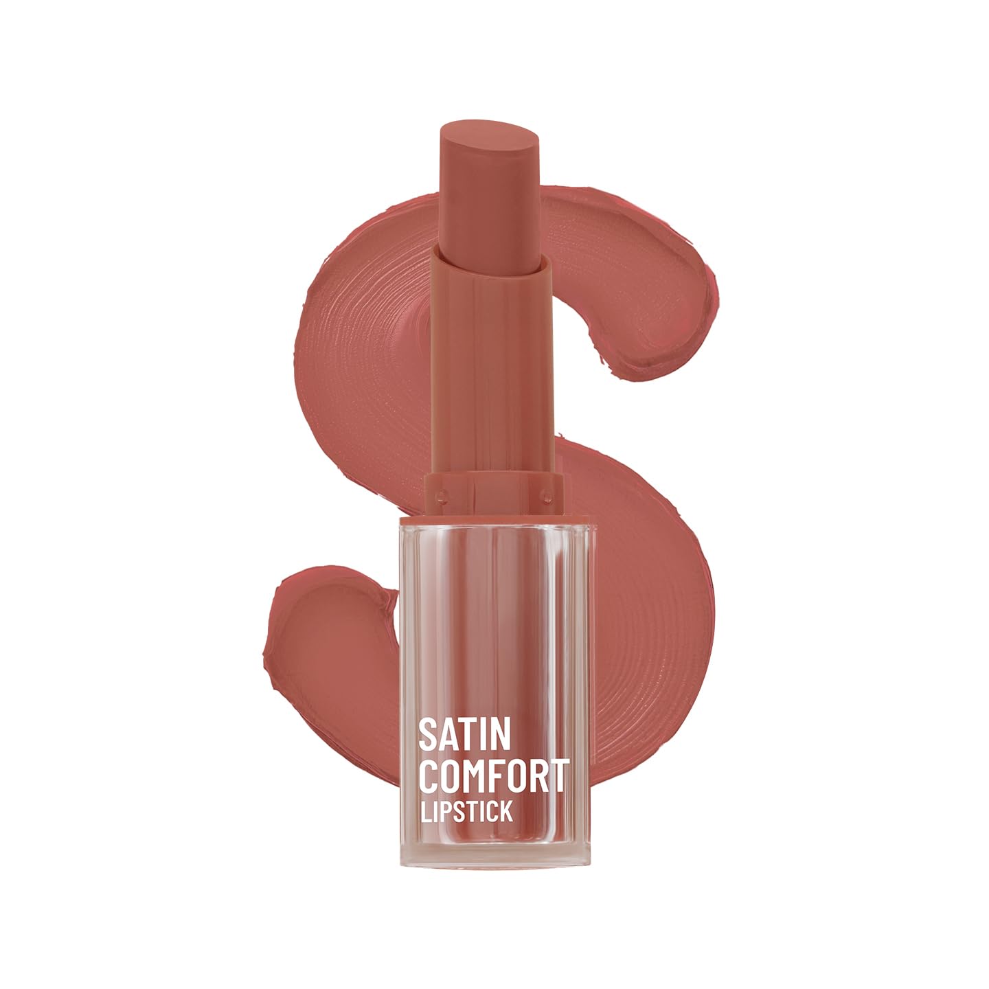 Swiss Beauty’s Satin Comfort Lipstick in Shade No. 01 Barely Nude is a universally flattering nude tone with warm peach undertones. Designed for one-swipe application, this lipstick delivers high pigmentation, a satin matte finish, and ultra-hydrating comfort that lasts throughout the day. The formula is enriched with moisturizing agents that keep lips soft, smooth, and nourished.