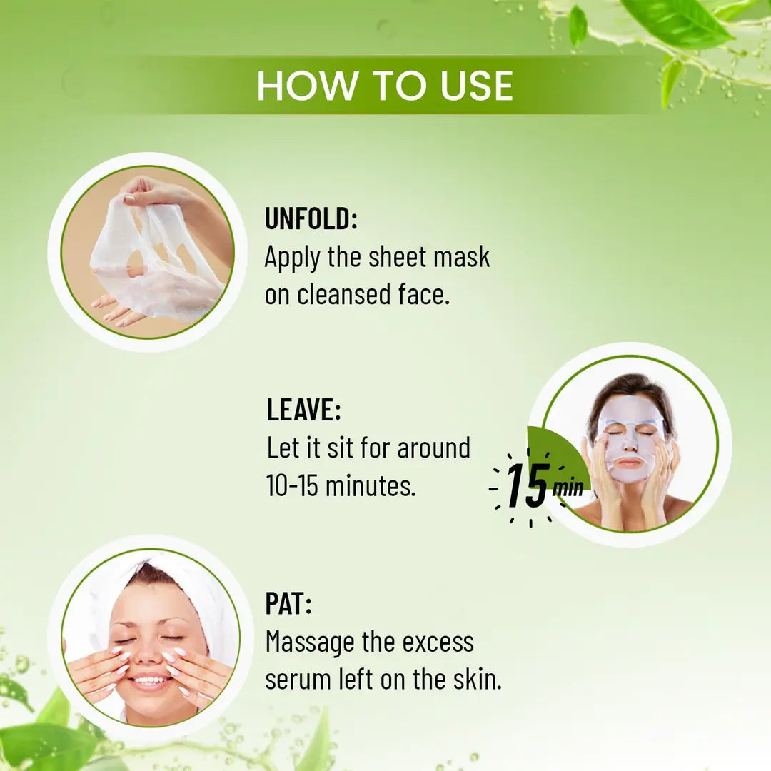 Apply: Unfold the sheet mask and place it evenly over your face.