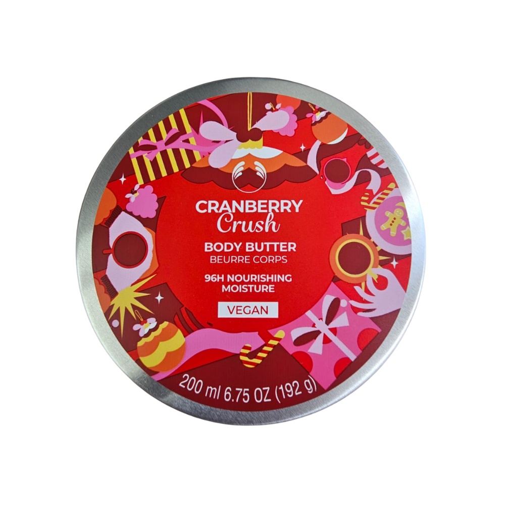 Cranberry Crush Body Butter (200ml) – deeply nourishing cream that locks in moisture for up to 24 hours.
