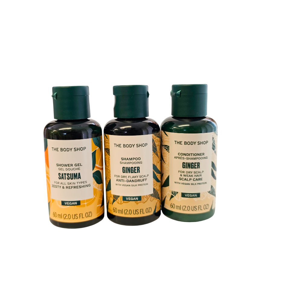 Experience the perfect travel-friendly hair and body care set with The Body Shop - Mini Hair & Bath Treats. This compact yet powerful kit includes Ginger Shampoo, Ginger Conditioner, and Satsuma Shower Gel, all packed in an eco-friendly pouch for easy portability. Designed to cleanse, nourish, and refresh, this set is ideal for maintaining healthy hair and skin while on the go. Whether you're traveling, heading to the gym, or simply looking for a convenient way to try The Body Shop’s best-selling products, this kit ensures you stay fresh and revitalized wherever you are.