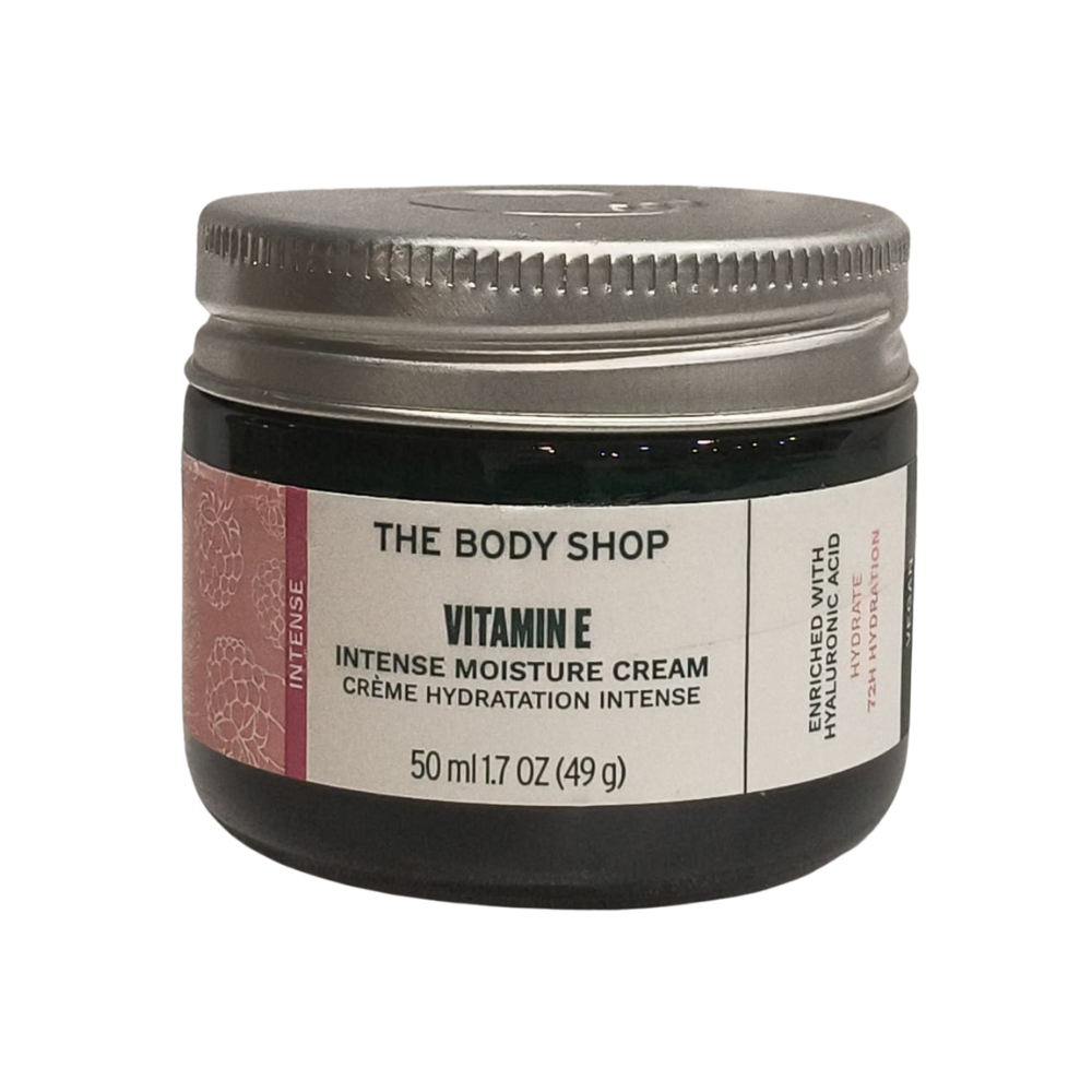 Description: Give your skin the hydration it craves with The Body Shop - Vitamin E Intense Moisture Cream, now available in a convenient 50ml size at Kess Hair & Beauty Online Store! This rich, nourishing cream is specially formulated to provide up to 72 hours of intense hydration, leaving your skin feeling soft, smooth, and plump with moisture. Enriched with Vitamin E, Hyaluronic Acid, and Raspberry Seed Oil, it helps protect your skin from dryness and environmental stressors while enhancing its natural radiance.